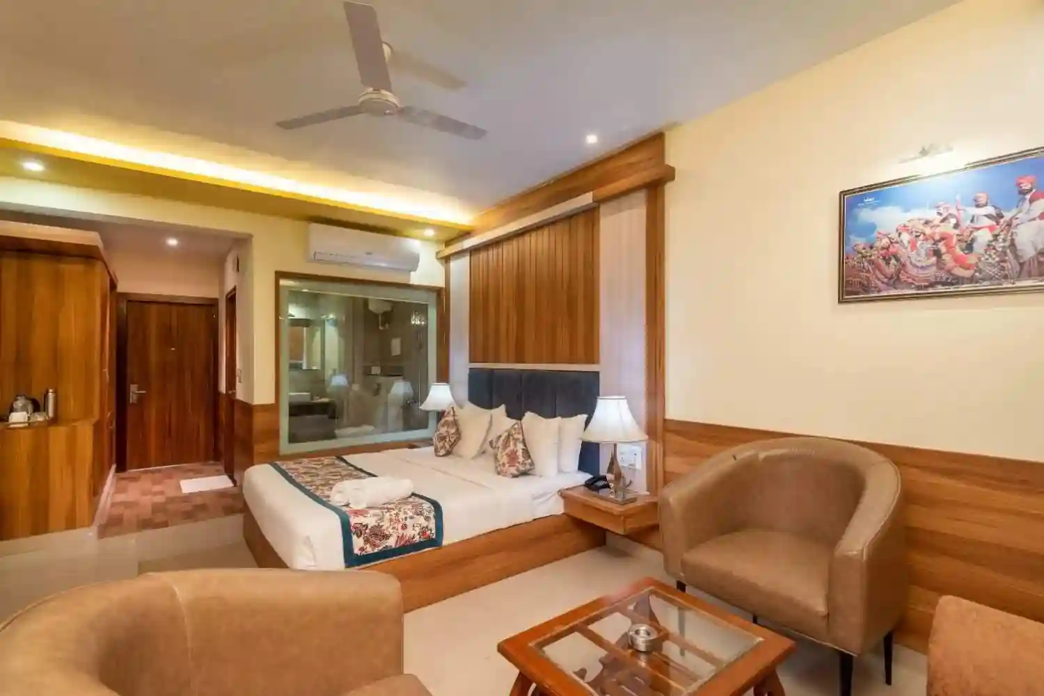 We have 29 executive rooms. Executive Rooms are the most spacious comfortable accommodation spread across an area of 250 sq. ft. Rooms are equipped with a king size bed enjoy a luxurious stay in these comfortable modern furnished unique designed rooms equipped with opulent luxury amenities. All rooms come with Hi Speed Wi-Fi, Smart TVs, mini-fridge, tea/coffee makers, and sofa work desks.