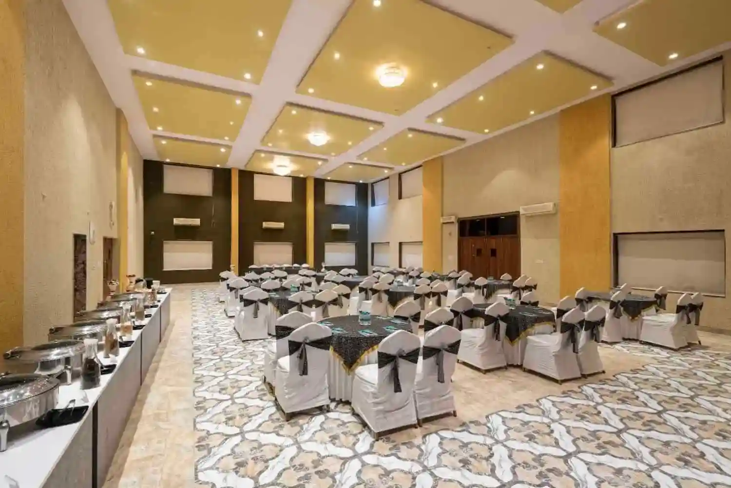 Kaushal International offering a Two large banquet approx. - 3200/- sq. ft. 24 ft. Height column less elegantly decorated well illuminated banquet hall suitable for 50 Pax to 200 pax Gathering. And the hotel has one conference hall ranging from 800/ sq. ft.