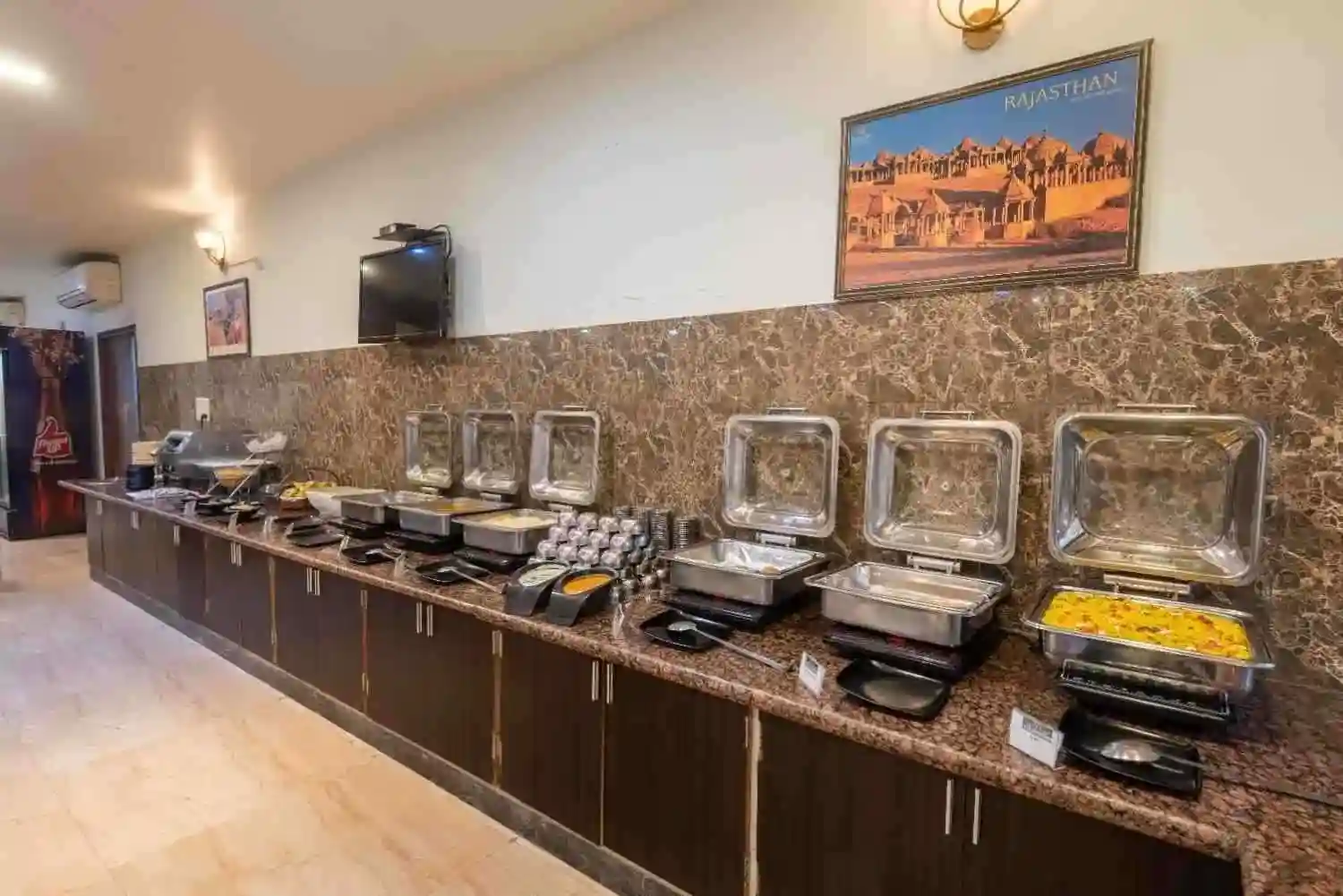 You can experience culinary excellence at our in-house restaurant, which makes Hotel Kaushal International the best Hotel in Sanchore, Rajasthan for food lovers. Choose your favourite delicacy from the diverse menu featuring local Rajasthani cuisine, and international cuisine. Our chefs use the finest quality raw ingredients to curate special and mouthwatering dishes for our guests. You can enjoy your time by dining in a warm and inviting setup that is perfect for romantic dinners, family meals and business lunches.