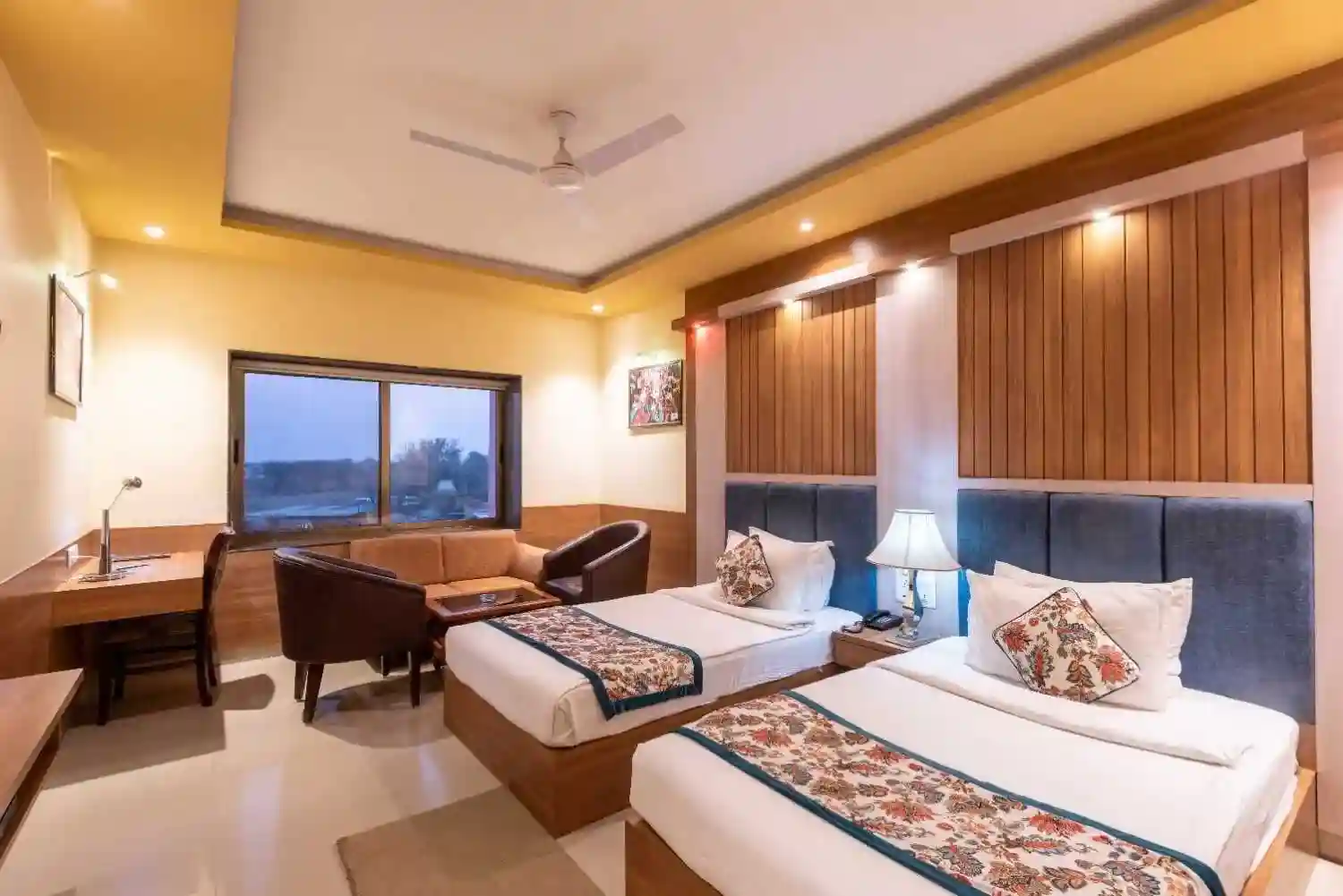 We have 25 executive deluxe rooms. Executive Deluxe Rooms are the most spacious comfortable accommodation spread across an area of 250 sq. ft. Rooms are equipped with a twin bed enjoy a luxurious stay in these comfortable modern furnished unique designed rooms equipped with opulent luxury amenities. All rooms come with Hi Speed Wi-Fi, Smart TVs, mini-fridge, tea/coffee makers, and sofa work desks.